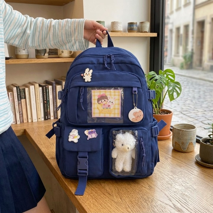 Cute Women Backpack Designed With Multi Pocket Canvas Construction For Durability And Style. This White Backpack Offers Spacious Storage For Books, Stationery, And Daily Essentials, Making It Ideal For Teenage Girls And Students. Lightweight Yet Strong, It Combines Practicality With A Fashionable Look. Comfortable Straps Ensure Easy Carrying, While Multiple Compartments Provide Organized Storage. Perfect For School, College, And Casual Outings, This Backpack Is A Stylish And Functional Choice For Women.