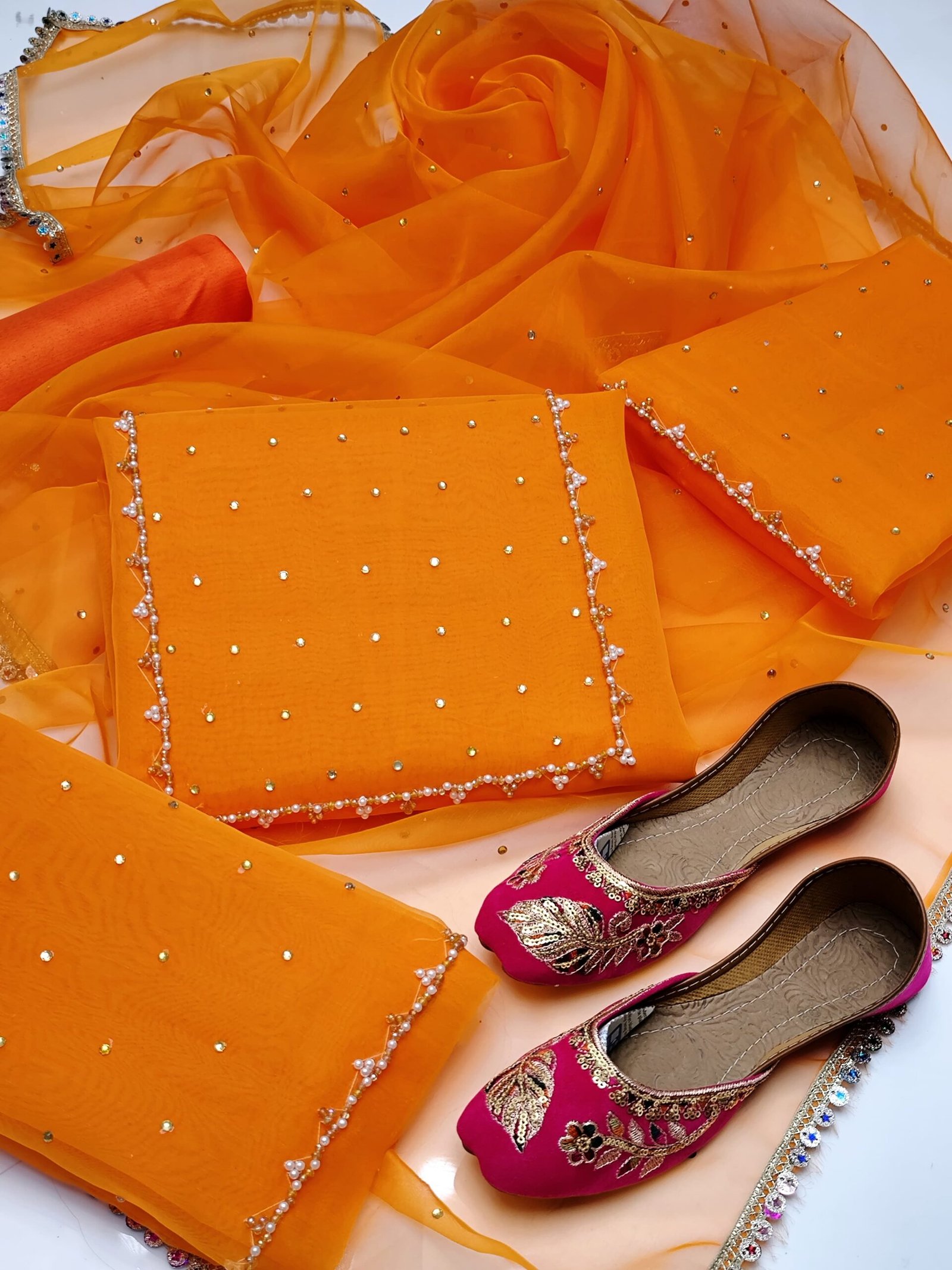 âïž *Duppata* Beautiful Organza All Over Kundan Work + 4 Sided Lase