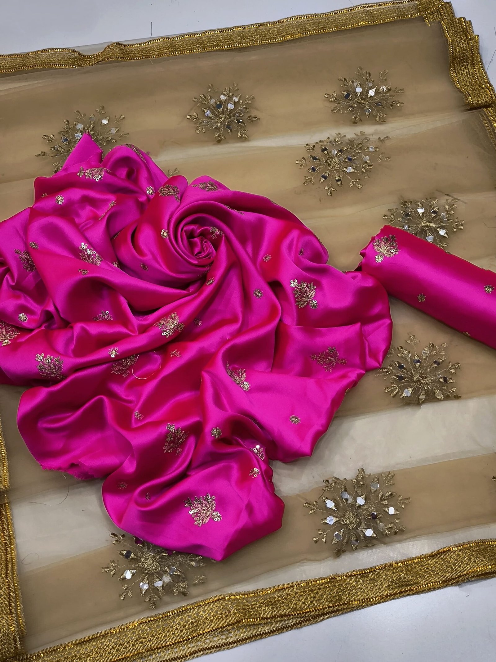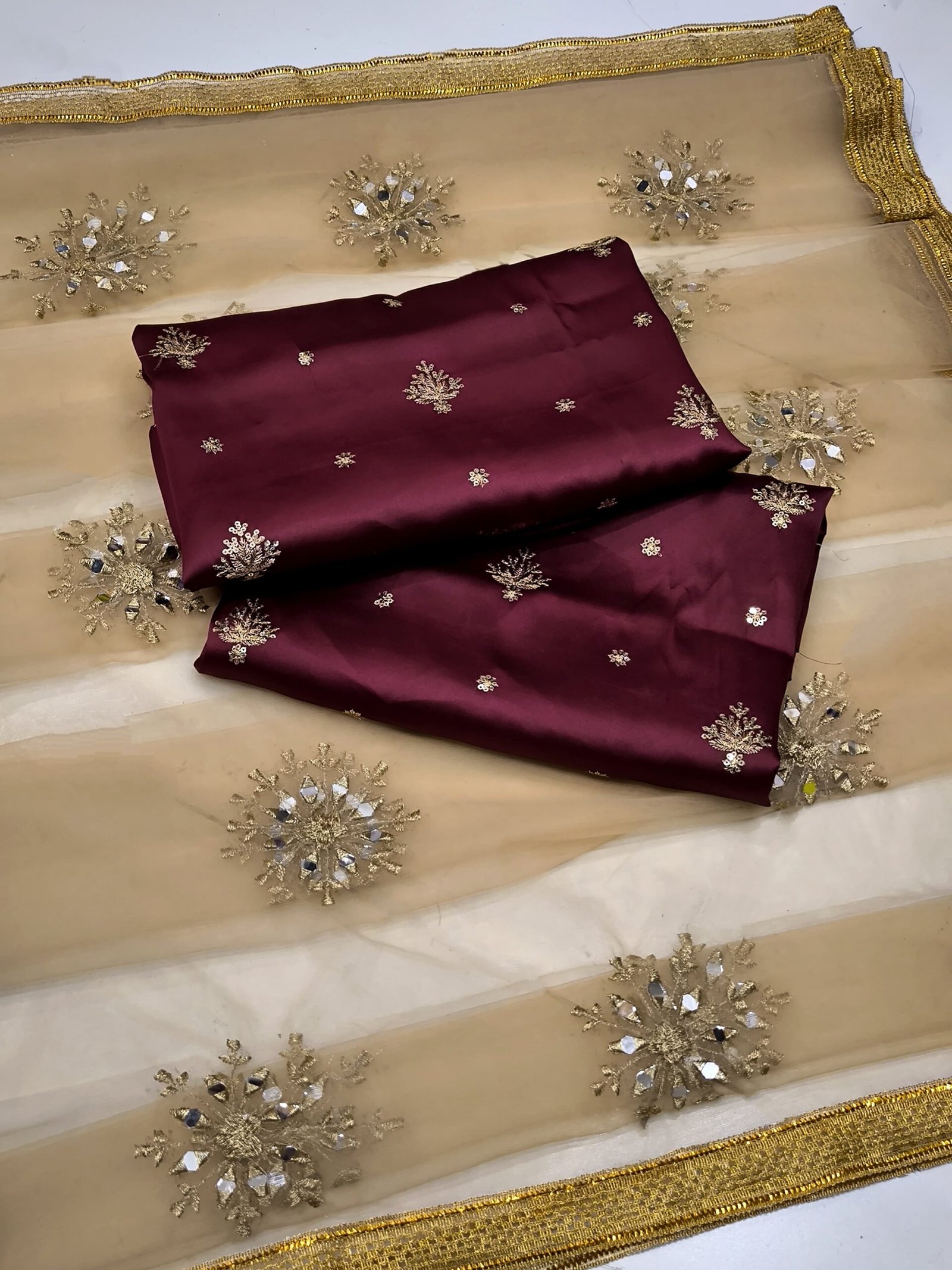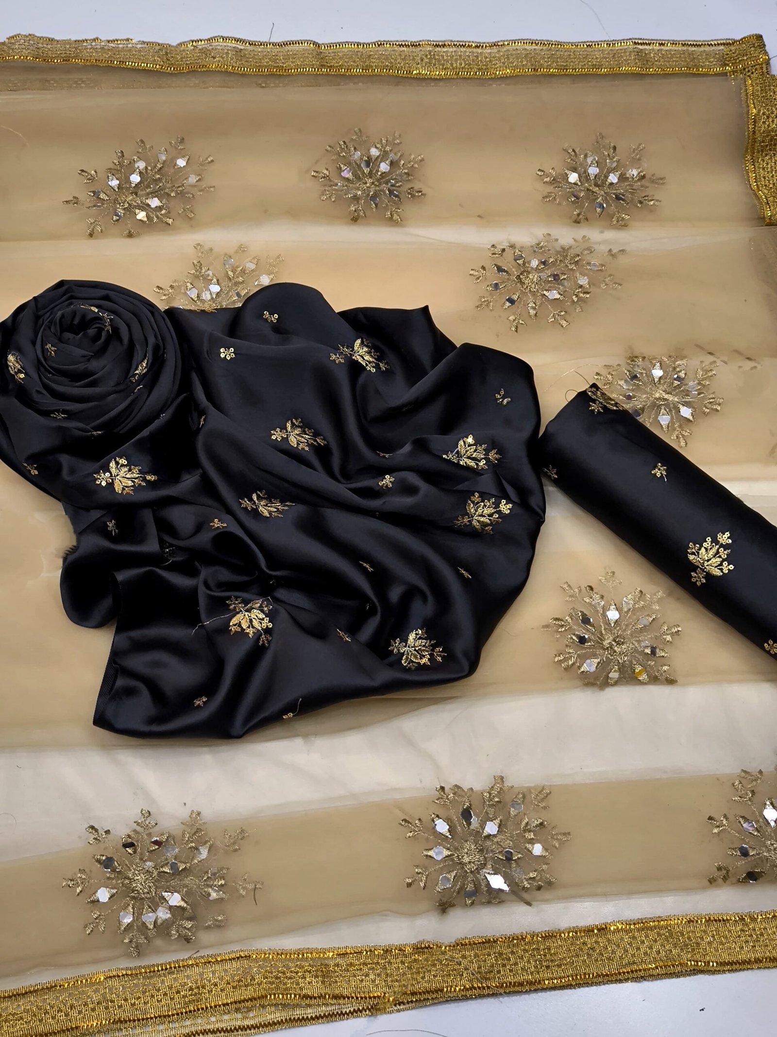 🪙 Indian net Mirror + Embroidery Dupatta with 4 Side Lase