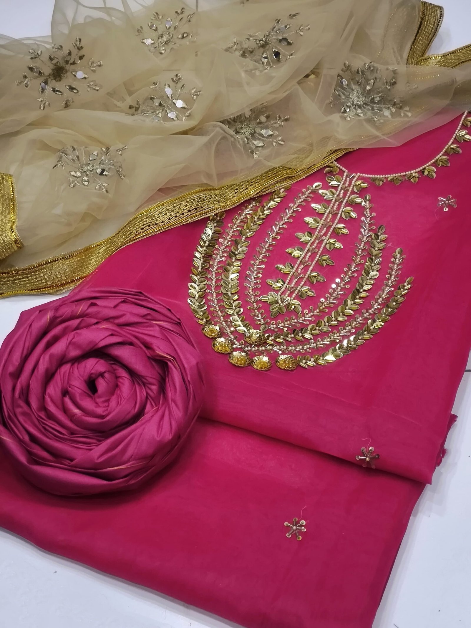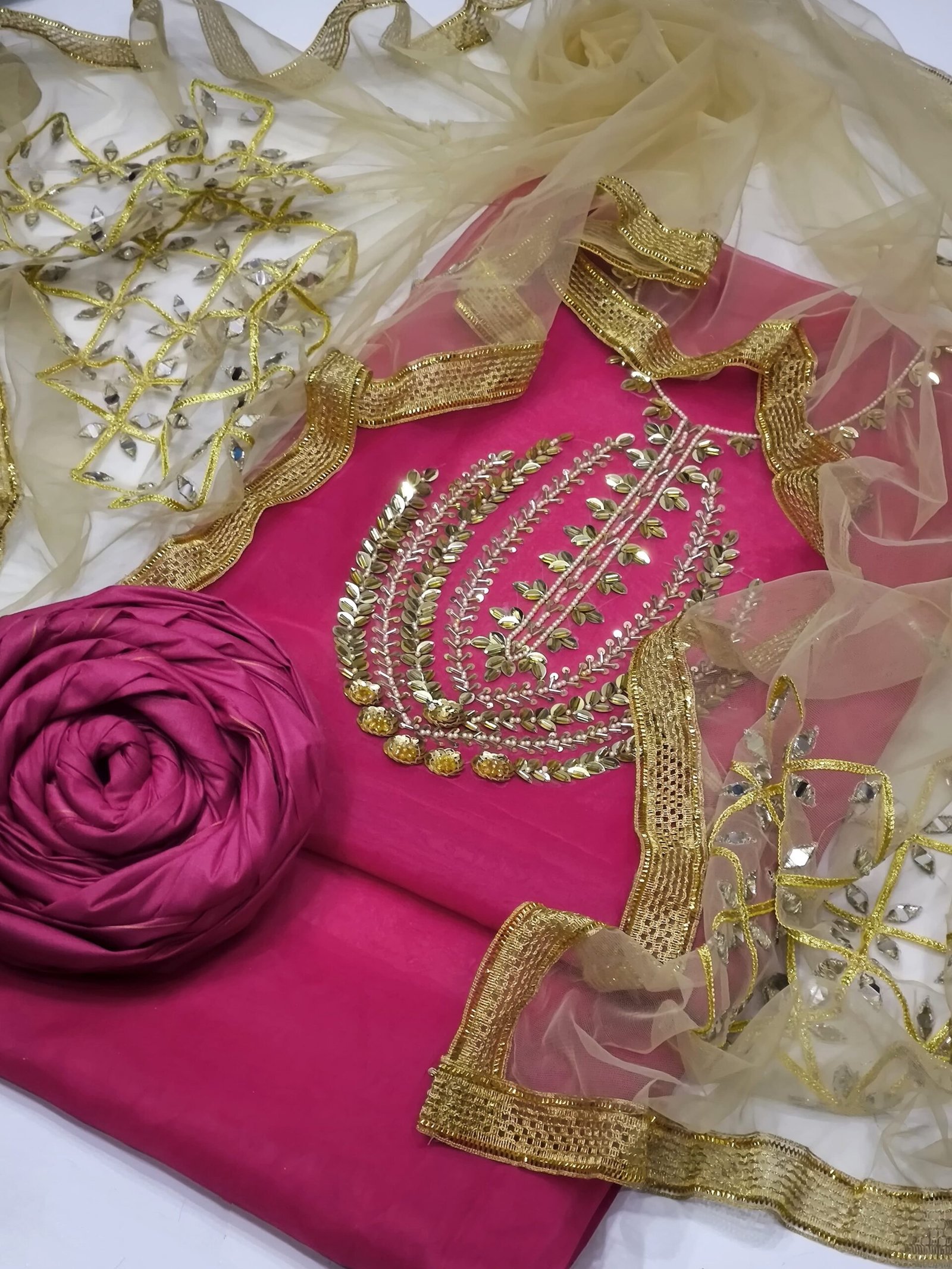 🎉 Net Fabric Beautiful Mirror work duppata with 4 sided Lase
