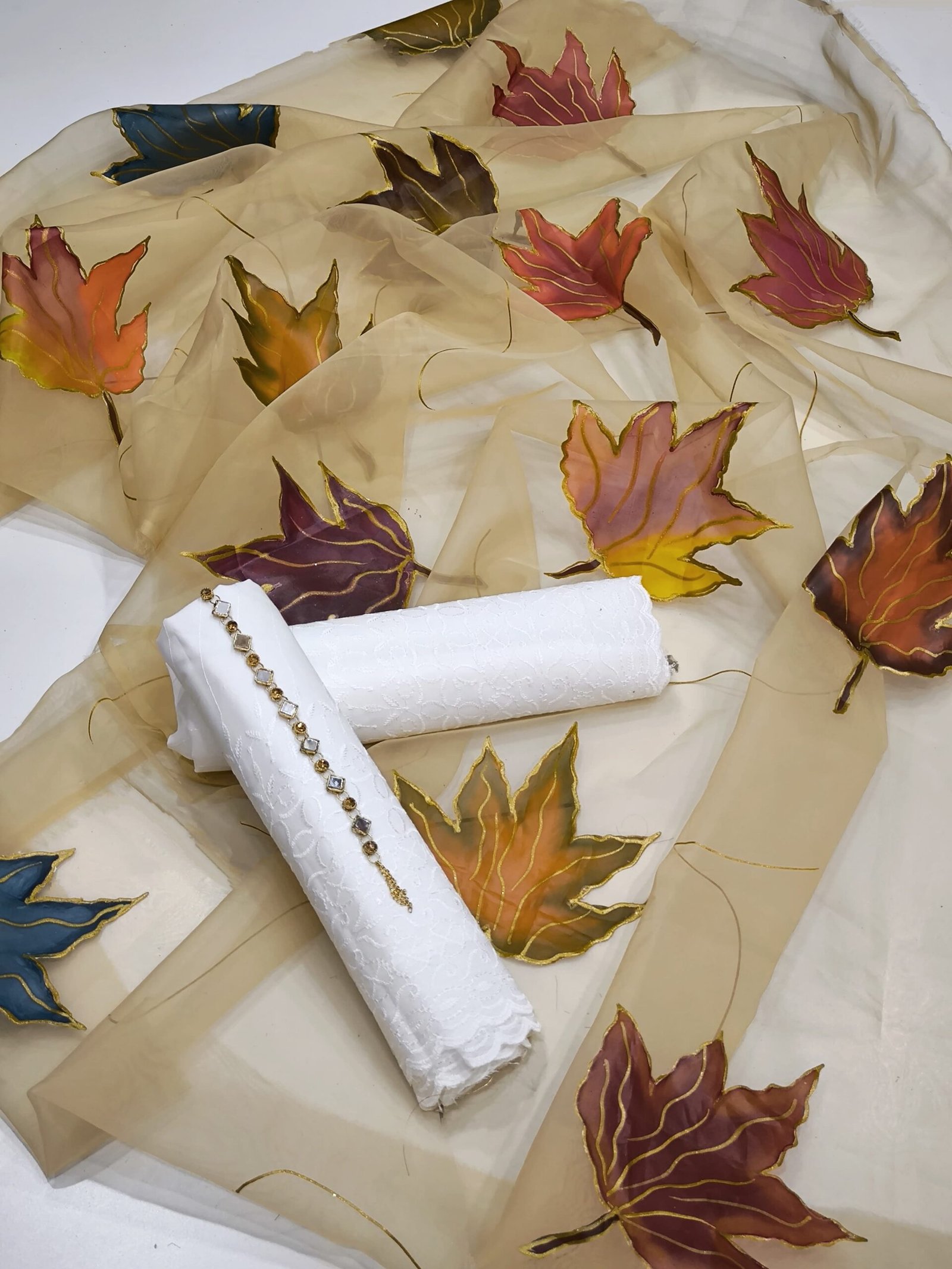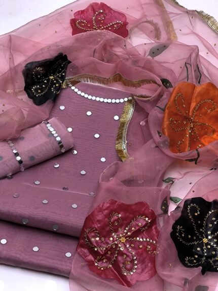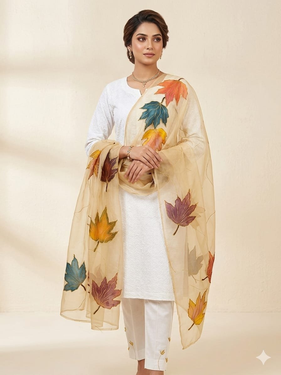 *Duppata* Handmade Multii oil paint Flowers Bunches & Glitter Work