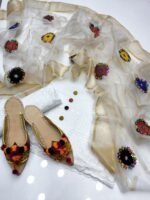 Duppata* Organza Maria B Tilla Lining Duppata with Beautiful Applick + Handmade work