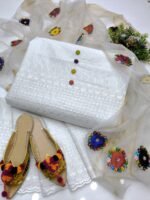 *ShiRt & Trouser 💝💝* White Chicken Kaari 12 Inches Embroided 🤍